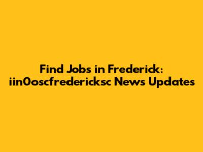 Find Jobs In Frederick: Iin0oscfredericksc News Updates