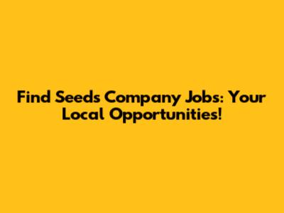 Find Seeds Company Jobs: Your Local Opportunities!