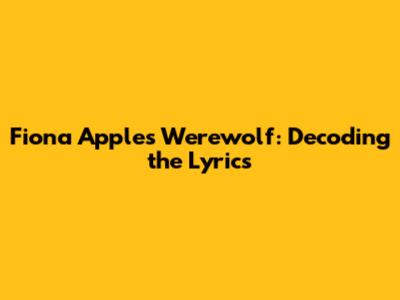 Fiona Apple's Werewolf: Decoding The Lyrics