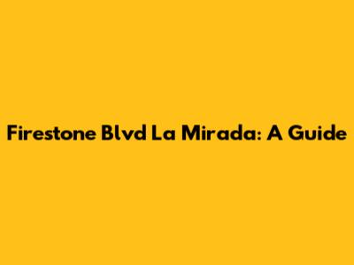 Firestone Blvd La Mirada: A Guide