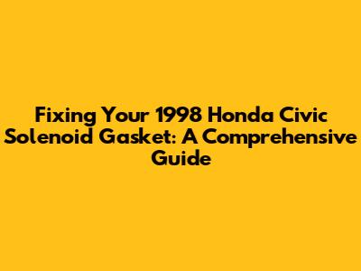 Fixing Your 1998 Honda Civic Solenoid Gasket: A Comprehensive Guide