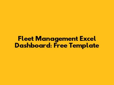 Fleet Management Excel Dashboard: Free Template