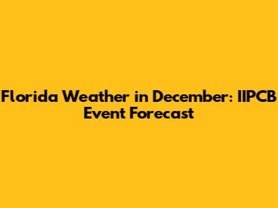 Florida Weather In December: IIPCB Event Forecast