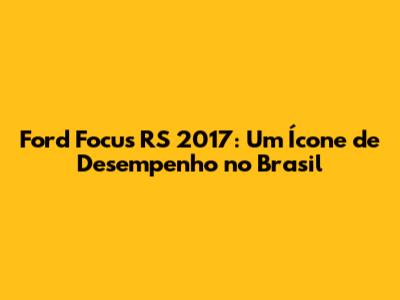 Preço do Ford Focus RS 2017 no Brasil: O Que Esperar?