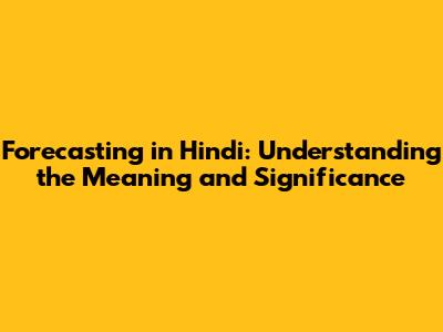 Forecasting In Hindi: Meaning, Methods, And Applications