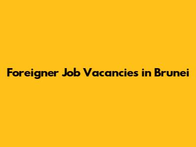 Foreigner Job Vacancies In Brunei