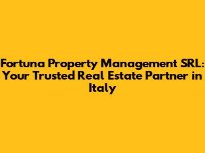 Hey there, real estate enthusiasts! Are you looking for a reliable partner to navigate the Italian property market? Look no further! This article is all about Fortuna Property Management SRL, a leading property management company in Italy. We're gonna dive deep into what makes them stand out, the services they offer, and how they can help you achieve your real estate goals. So, grab a coffee, sit back, and let's explore the world of Fortuna Property Management SRL!