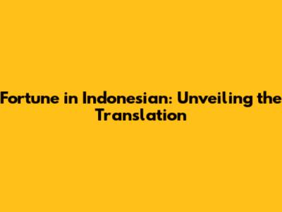 Fortune In Indonesian: Unveiling The Translation