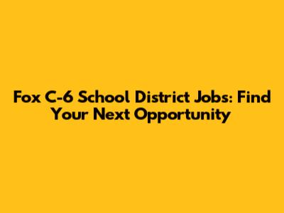 Are you seeking rewarding career opportunities within a supportive and dynamic educational environment? Look no further than the Fox C-6 School District! This district is a cornerstone of the community, dedicated to fostering academic excellence and personal growth for its students. If you're passionate about making a difference in the lives of young people, exploring job openings at Fox C-6 might be the perfect next step in your career journey. Let's dive into what makes this district special and how you can become a part of their team.