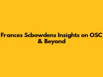 Frances Scbowden's Insights On OSC & Beyond
