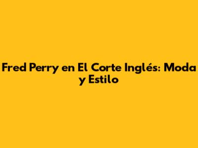 Fred Perry En El Corte Inglés: Moda Y Estilo