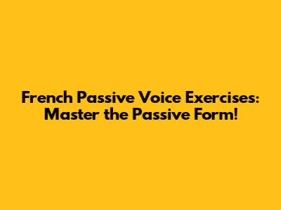 French Passive Voice Exercises: Master The Passive Form!