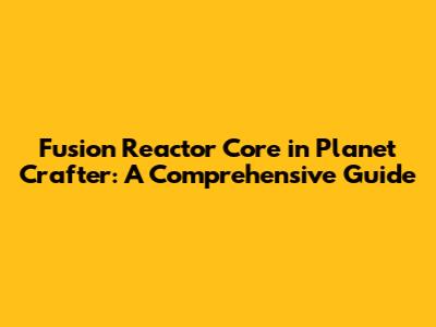 Fusion Reactor Core In Planet Crafter: A Comprehensive Guide