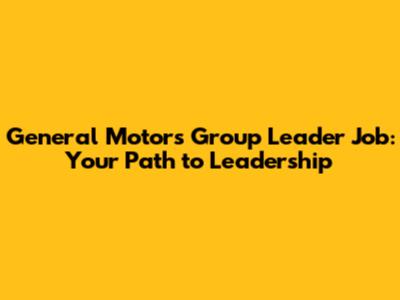 General Motors Group Leader Job: Your Path To Leadership