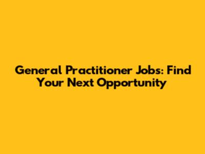 General Practitioner Jobs: Find Your Next Opportunity