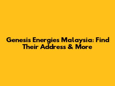 Genesis Energies Malaysia: Find Their Address & More