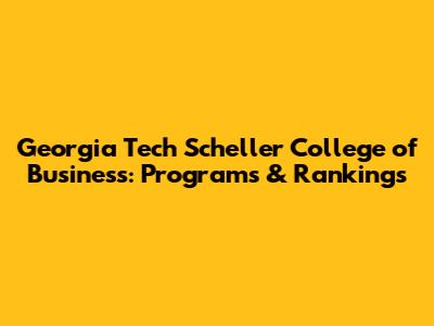 Georgia Tech Scheller College Of Business: Programs & Rankings