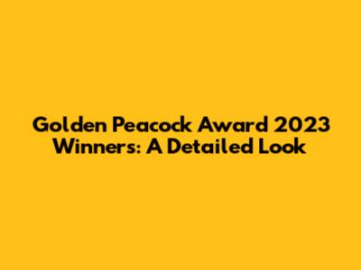 Golden Peacock Award 2023 Winners: A Detailed Look