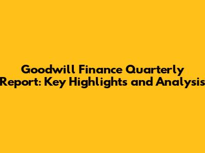 Goodwill Finance: Quarterly Report Highlights & Analysis