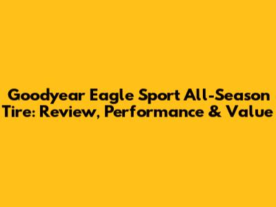 Goodyear Eagle Sport AS: Review, Performance & Value