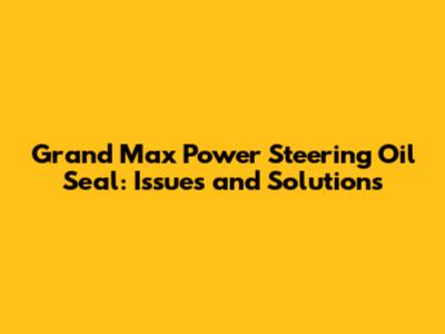 Grand Max Power Steering Oil Seal: Issues And Solutions