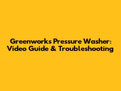 Greenworks Pressure Washer: Video Guide & Troubleshooting