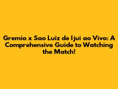 Where to Watch the Gremio x Sao Luiz de Ijui ao Vivo Match