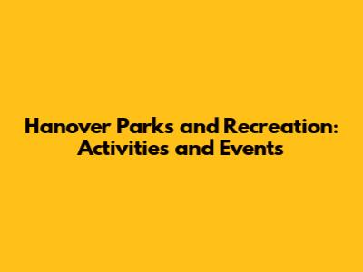 Hanover Parks And Recreation: Activities And Events