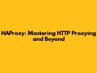 HAProxy: Mastering HTTP Proxying And Beyond