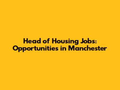 Head Of Housing Jobs: Opportunities In Manchester