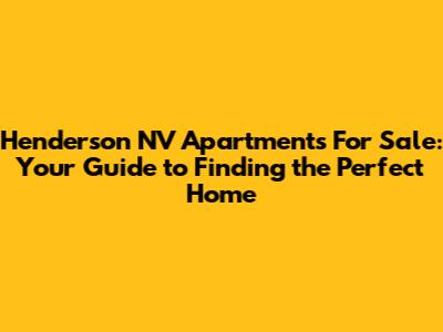 Henderson NV Apartments For Sale: Your Guide To Finding The Perfect Home