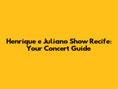 Henrique E Juliano In Recife: Your Concert Guide
