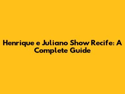 Henrique E Juliano: Recife Show Guide