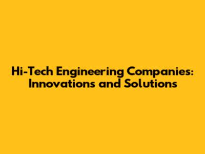 Hi-Tech Engineering Companies: Innovations And Solutions