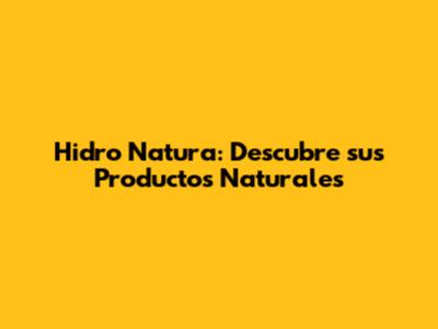 Hidro Natura: Descubre Sus Productos Naturales