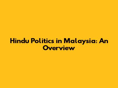 Hindu Politics In Malaysia: An Overview