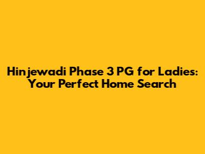 Hinjewadi Phase 3 PG For Ladies: Finding Your Perfect Home