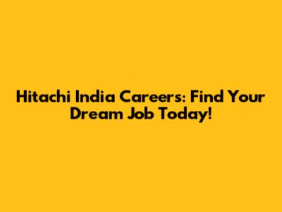 Hitachi India Careers: Find Your Dream Job Today!