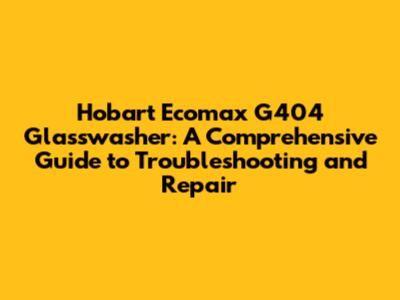 Hobart Ecomax G404 Glasswasher: Troubleshooting & Repair
