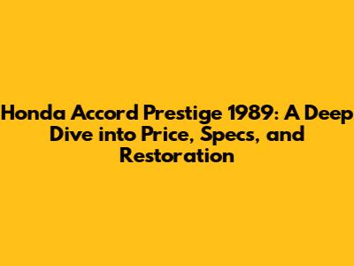 Honda Accord Prestige 1989: Price, Specs, And Restoration