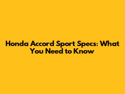 Honda Accord Sport Specs: What You Need To Know