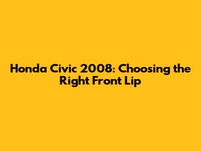 Hey guys! Thinking about adding a front lip to your 2008 Honda Civic? Awesome choice! A front lip can dramatically change the look of your ride, giving it a sportier, more aggressive stance. But with so many options out there, it's easy to get lost. Don't worry, though! I'm here to guide you through everything you need to know to pick the perfect front lip for your Civic. We'll cover different styles, materials, installation tips, and even some things to watch out for. So, let's dive in and get your Civic looking its best!