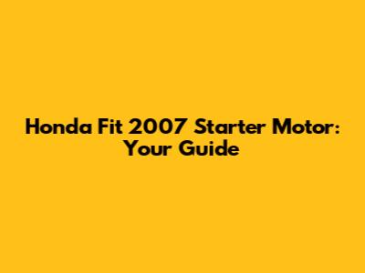Honda Fit 2007 Starter Motor: Troubleshooting & Replacement
