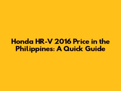 Honda HR-V 2016 Price In The Philippines: A Quick Guide