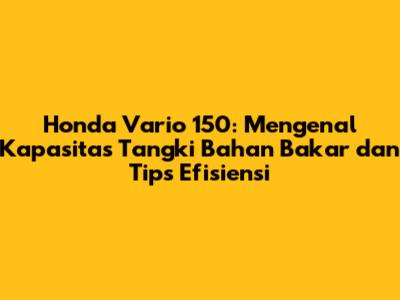 Honda Vario 150 adalah motor matic yang handal dan irit bahan bakar. Dengan kapasitas tangki 5,5 liter, motor ini memberikan jarak tempuh yang memadai untuk penggunaan sehari-hari. Namun, efisiensi bahan bakar dapat ditingkatkan dengan memperhatikan gaya berkendara, kondisi jalan, perawatan motor, dan kualitas bahan bakar.