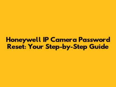 Honeywell IP Camera Password Recovery: A Simple Guide