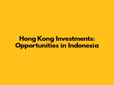Hong Kong Investments: Opportunities In Indonesia