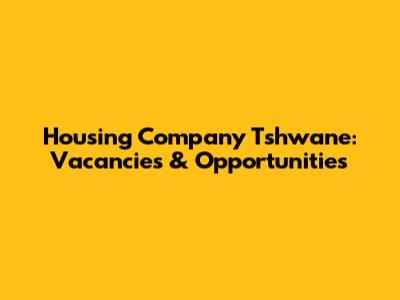 Housing Company Tshwane: Vacancies & Opportunities