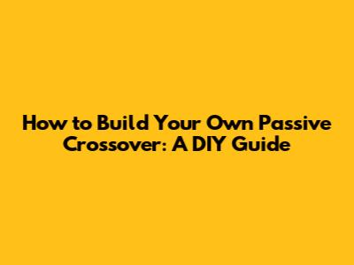 How To Build Your Own Passive Crossover: A DIY Guide