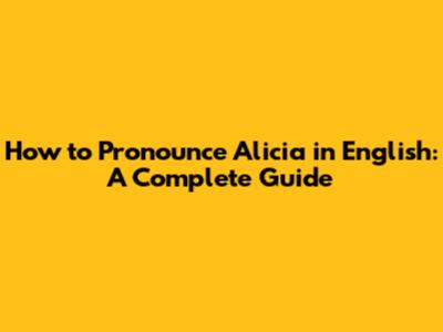 How To Pronounce Alicia In English: A Complete Guide
